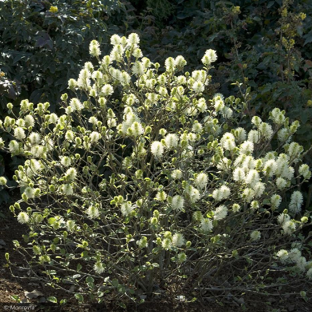 A deciduous shrub with deep blue-green leaves that have spectacular range of fall color. Showy, honey-scented, bottlebrush-like, white flowers appear before foliage emerges in spring. A beautiful addition to the landscape in semi-shaded mixed shrub borders, or as a background shrub, or hedge plant.